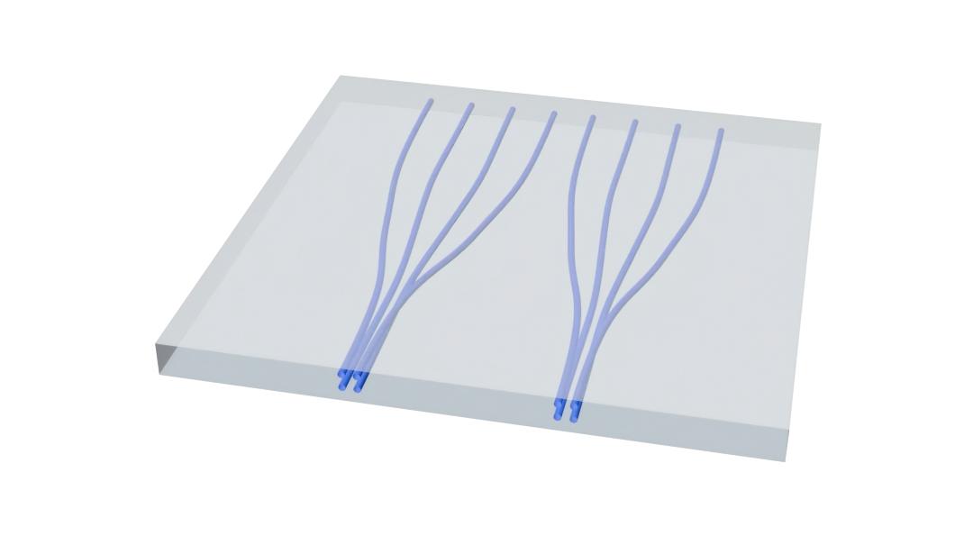 激光(guāng)直寫3D波導技(jì)→δ術(shù)利用(yòng)自(zì)開(kāi)發的(de)飛(fēi)秒(miǎo)₽✔激光(guāng)直寫設備,通(tōng)過精确控制(zhì)激光(guāng)在玻璃基♥↓σ₽材上(shàng)的(de)寫入,實現(xiàn)高(gāo)精度的(de)三維波導結構。該✔♠技(jì)術(shù)具有(yǒu)低(dī)損耗、高(gγ✘≠āo)密度、精細加工(gōng)的(de)優勢,能(néng)夠在微(w©≥ēi)米級别上(shàng)精确調控光(guāng)的(♣λΩde)傳播路(lù)徑,廣泛應用(yòng)于光(guāng)學通(tōng)信、傳感♣↑器(qì)和(hé)光(guāng)電(diàn)集成等領域,推動光(guāng)通(tε€ōng)信器(qì)件(jiàn)和(hé)模塊的(de)創新與發展。